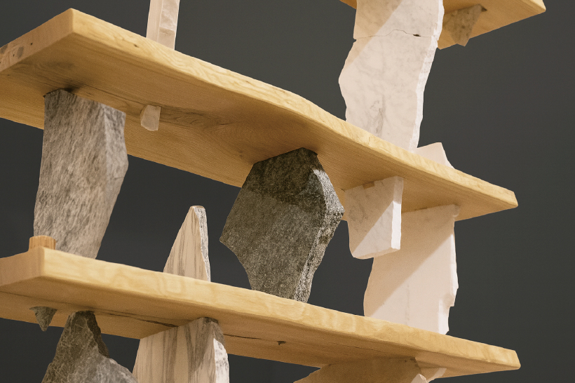 捨てられた木片や石の端材、プラスチックなど、見過ごされてきた魅力をもつ素材に、現代の技術で新しい形と意味を与える